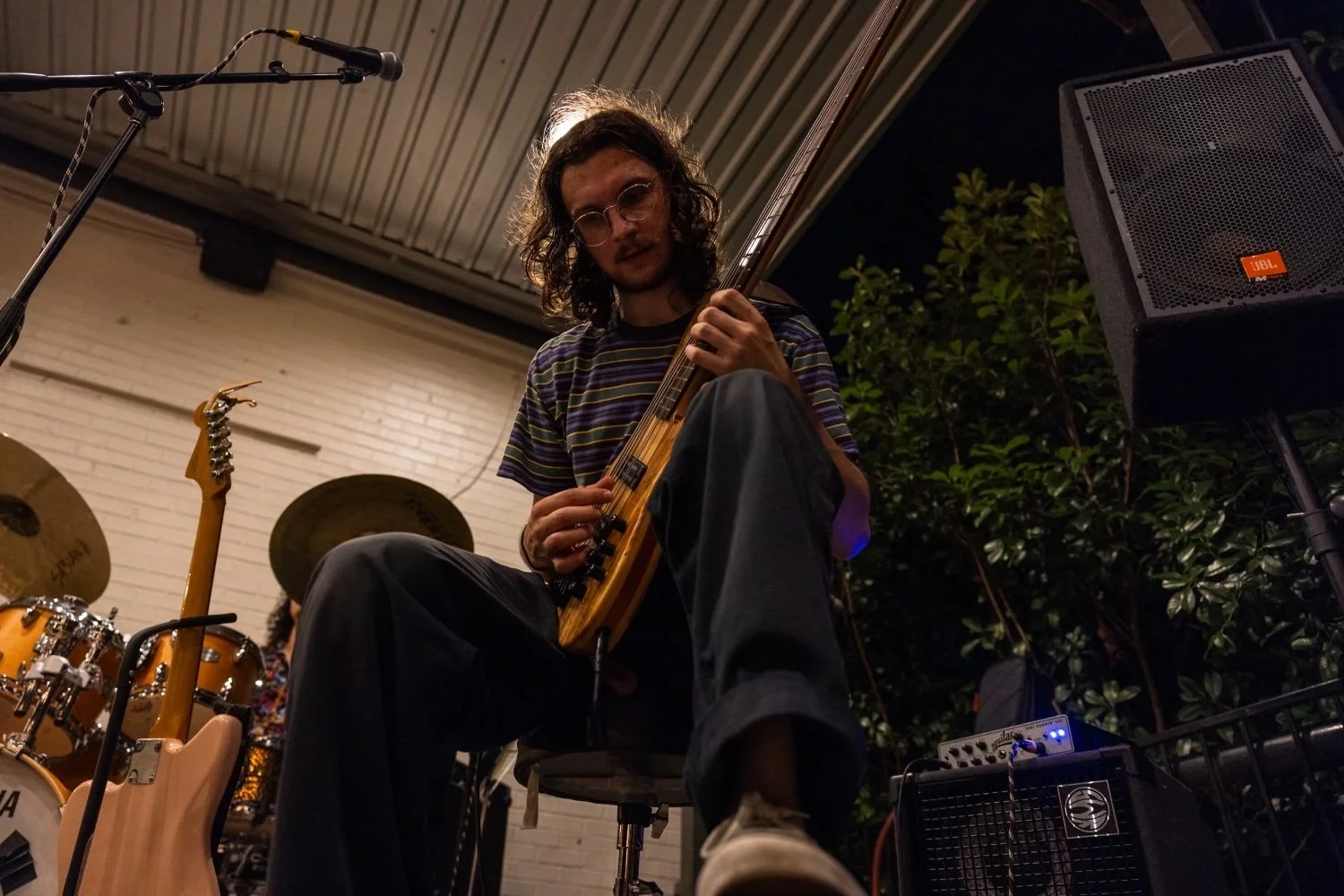 Jake Chaffee is a bassist, visual artist, and ambient music producer based in Eugene, OR. With roots in Southern California and Texas, they have performed widely as a freelance musician and released several projects under the name JEC. Known for their immersive ambient livestreams and a joyful, expressive stage presence, Jake blends technical skill with a deep love of musical exploration.
